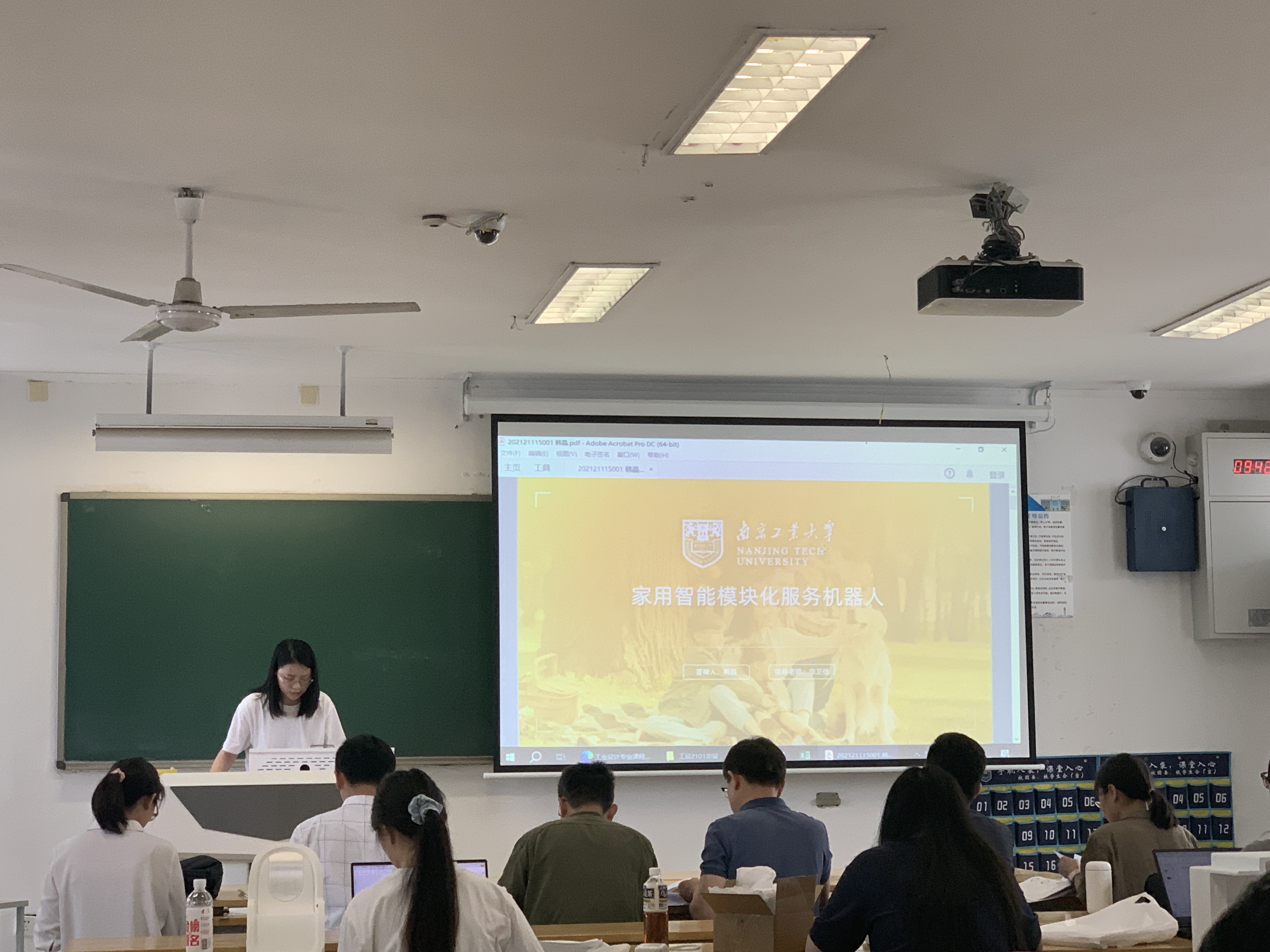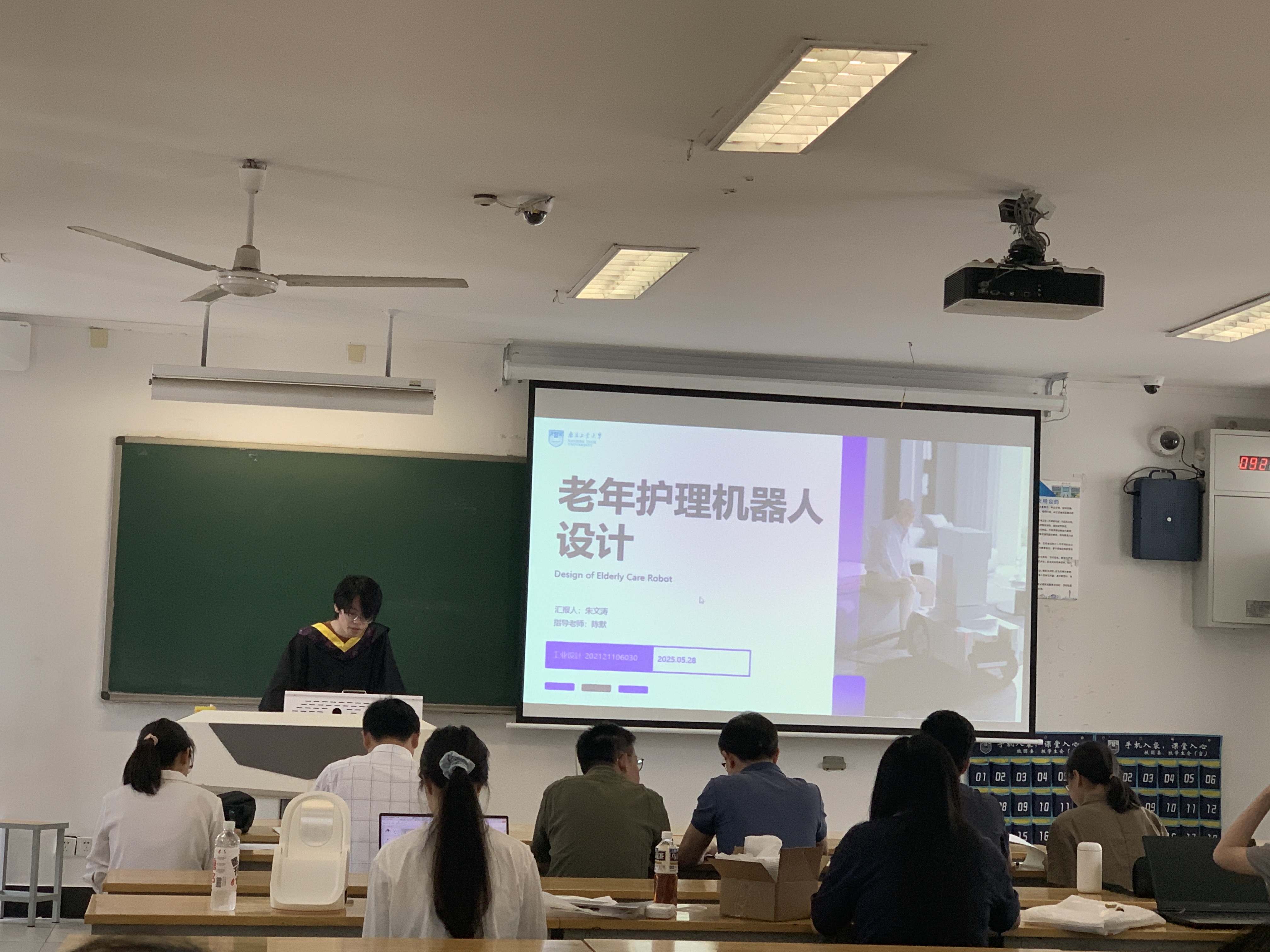 工设2101班30位学生依据答辩顺序,先后走上讲台,从产品调研、方案设计、结构设计、色彩标识、材料工艺、人机交互、模型制作、总结思考等方面,对各自毕设课题进行了汇报。